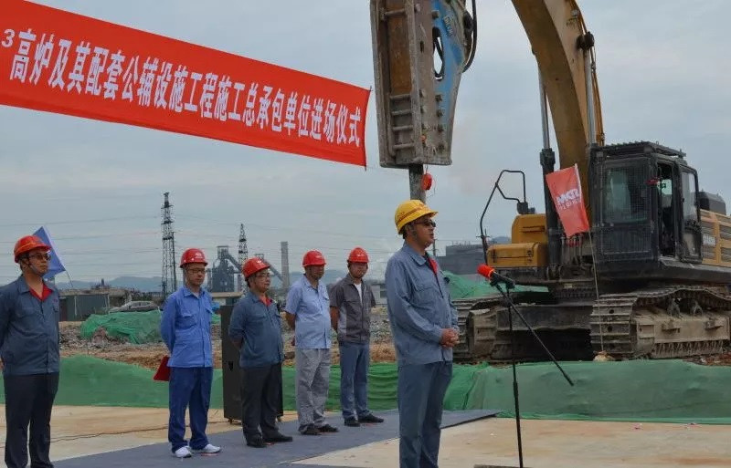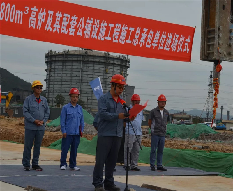 山冶設(shè)計(jì)黨委書記谷卓奇、萊蕪三控冶金建設(shè)監(jiān)理事務(wù)所經(jīng)理沈桂聯(lián)、中國二十冶集團(tuán)有限公司高爐項(xiàng)目部項(xiàng)目經(jīng)理任茂盛分別代表總承包單位、施工監(jiān)理、施工單位致辭,最后山鋼股份萊蕪分公司煉鐵廠黨委書記、高爐項(xiàng)目部經(jīng)理孫建設(shè)宣布:“山鋼股份萊蕪分公司新舊動(dòng)能轉(zhuǎn)換項(xiàng)目新建2×3800立方米高爐及其配套公輔設(shè)施工程施工總承包單位進(jìn)場!”