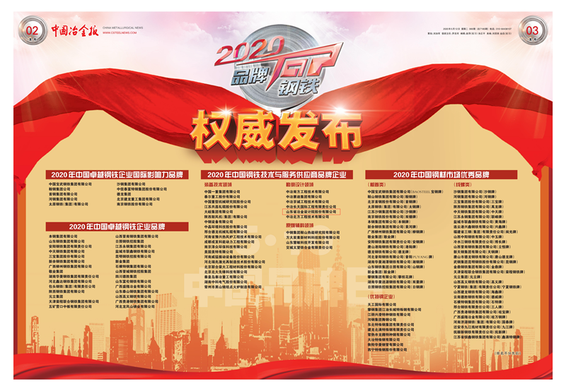2020510日,是我國第四個中國品牌日,中國冶金報社發布了2020年中國鋼鐵品牌榜,我公司上榜“2020年中國鋼鐵技術與服務供應商品牌企業。此獎項是我公司繼獲得國家優質工程獎之后的又一國家級榮譽。