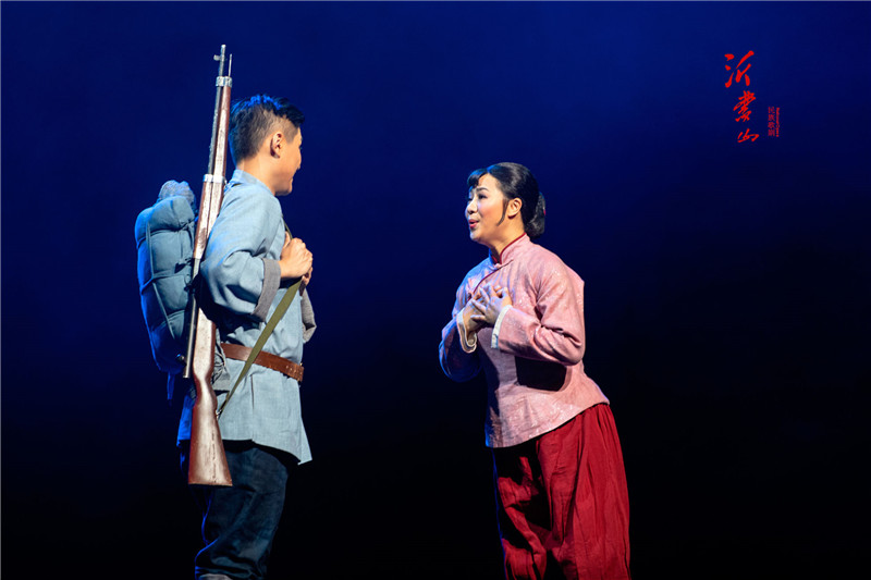 巍巍蒙山高,親親沂水長(zhǎng),沂蒙的兒女叫沂蒙。歌劇《沂蒙山》以抗日戰(zhàn)爭(zhēng)為主線,以大青山突圍、淵子崖戰(zhàn)役為創(chuàng)作素材,以氣勢(shì)恢宏的舞臺(tái),激奮人心的唱詞,經(jīng)典大氣的曲調(diào)和情感真摯的表演,譜寫了一曲感人至深的蒙山沂水英雄贊歌,演繹了一段齊魯軍民可歌可泣的抗戰(zhàn)故事,展現(xiàn)了軍民水乳交融、生死與共鑄就的沂蒙精神。