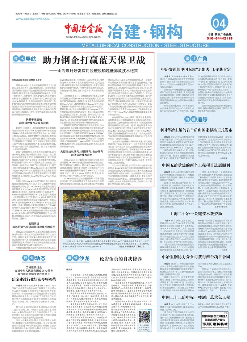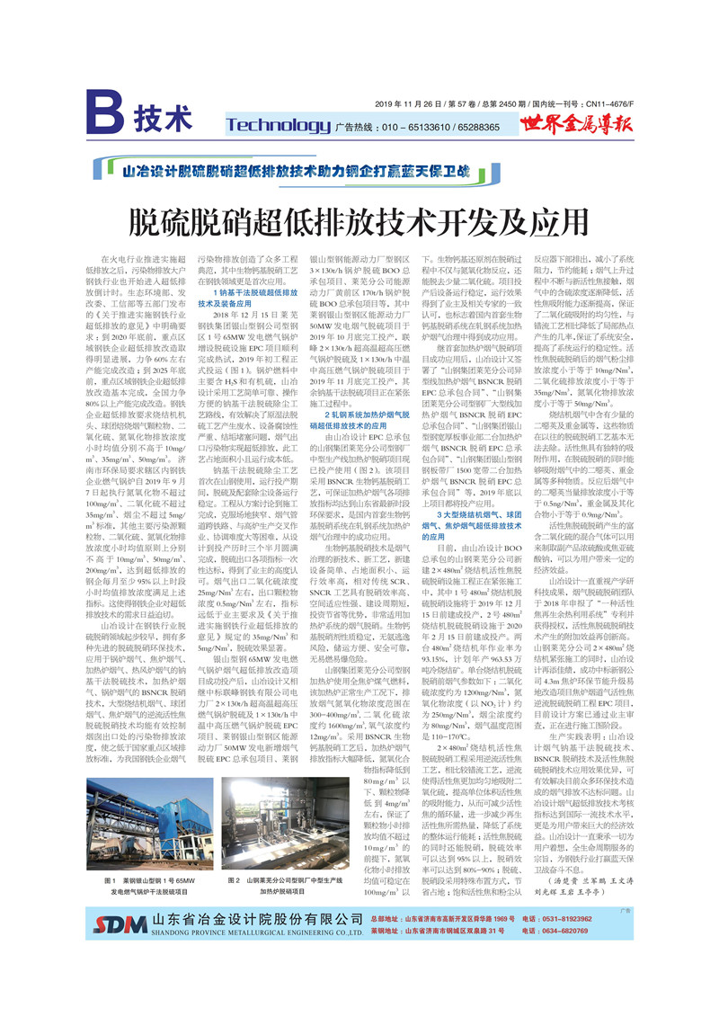 山冶設(shè)計(jì)脫硫脫硝超低排放技術(shù)助力鋼企打贏藍(lán)天保衛(wèi)戰(zhàn)——脫硫脫硝超低排放技術(shù)開發(fā)及應(yīng)用